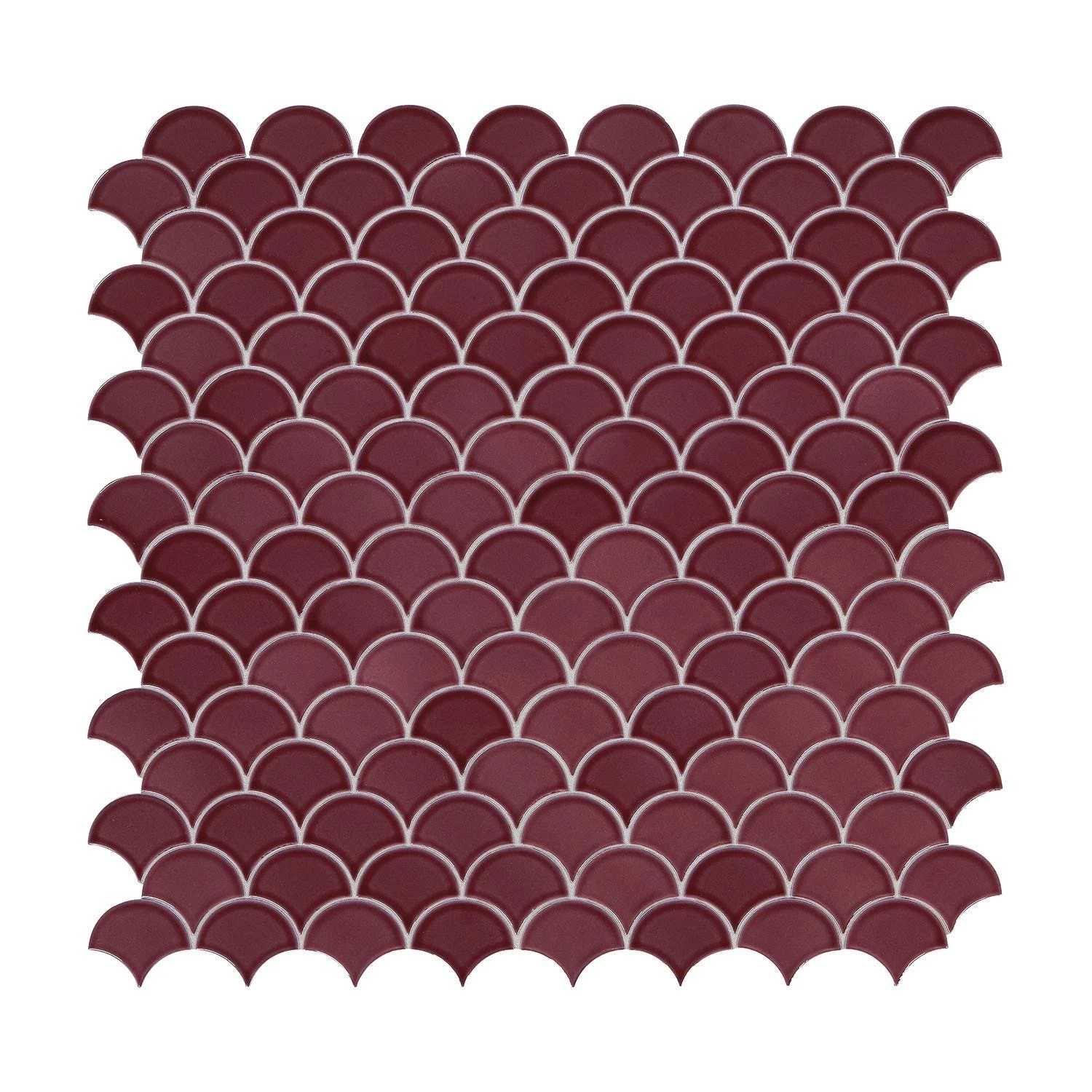 Play with the whimsical shapes and colors offered in Revalia ceramic mosaics offered in unique figures like fan shapes.