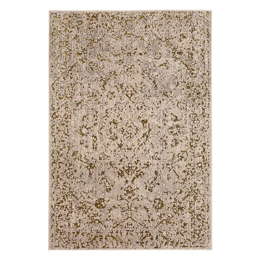 A burnout Persian inspired motif is revealed in vibrant contemporary multicolor hues in Karastans Chisel Area Rug in Gold. Decadent dustings of viscose glisten alongside plush EverStrand recycled synthetic yarn in the design debuts of Karastans Axiom Collection. Style and sustainability are wondrously woven together in this artistically influenced collection crafted with environmentally friendly yarn derived from post-consumer plastic water bottles. Ideal for entryways, living rooms, kitchens, bedrooms, dining areas, offices and more, this designer style is also available in runners, scatters, 5 x 8 area rugs, large 8 x 10 area rugs and other popular sizes. Keep your new rug and the flooring beneath looking their best with an essential all-surface, earth conscious rug pad, crafted of 100% recycled fibers and certified Green Label Plus by The Carpet & Rug Institute!