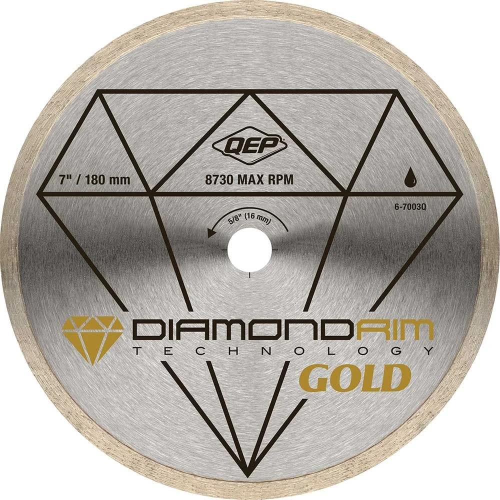The QEP 6-7003Q 7 in. continuous rim diamond blade provides accurate cutting with minimal chipping. The blade is specifically engineered for cutting ceramic tile, as well as granite, marble, pavers and many other materials. Designed for wet cutting and long lasting performance.