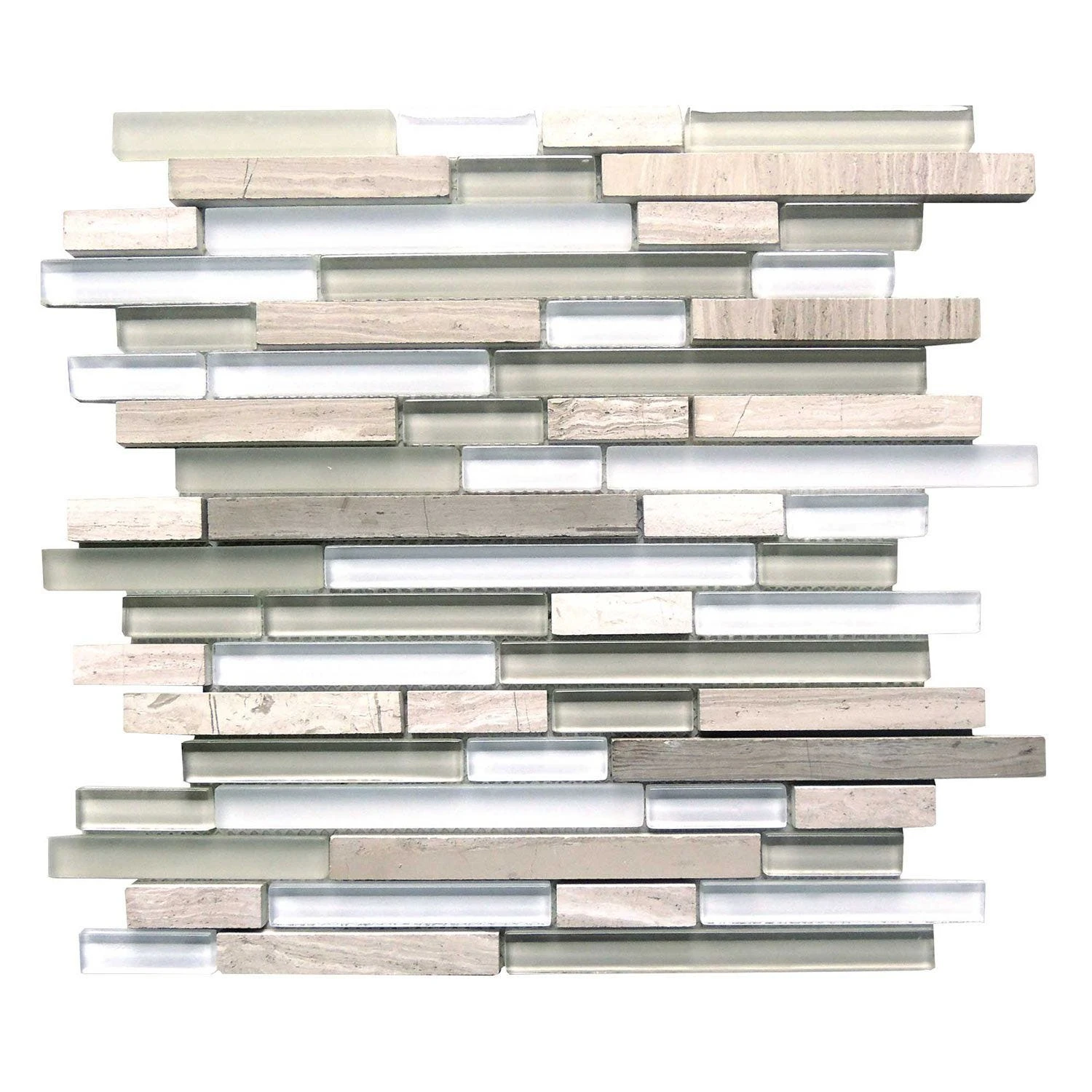 A well balanced blend different color and combined with glass and marble. Perfect choice for a kitchen or bath backsplash.