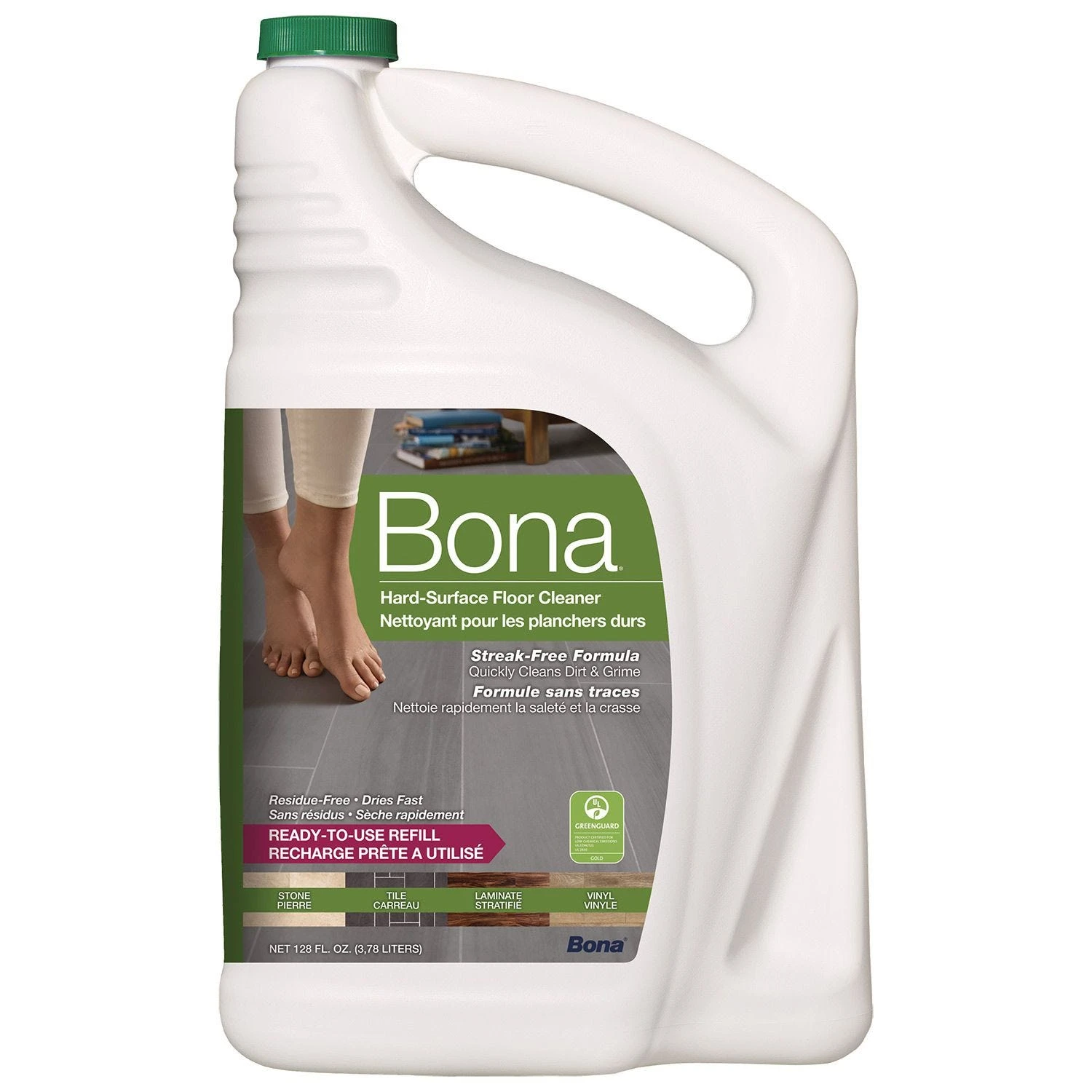 Bona® hard-surface floor cleaner refill fills your empty Bona cartridge or spray bottle with ready-to-use Bona hard-surface floor cleaner. The bottle has splash less technology while the wide handle allows for an easy, controllable refill experience. The rinse-free, streak-free formula cleans hard-surface floors effectively by removing dust, dirt and grime leaving your floors clean and beautiful.