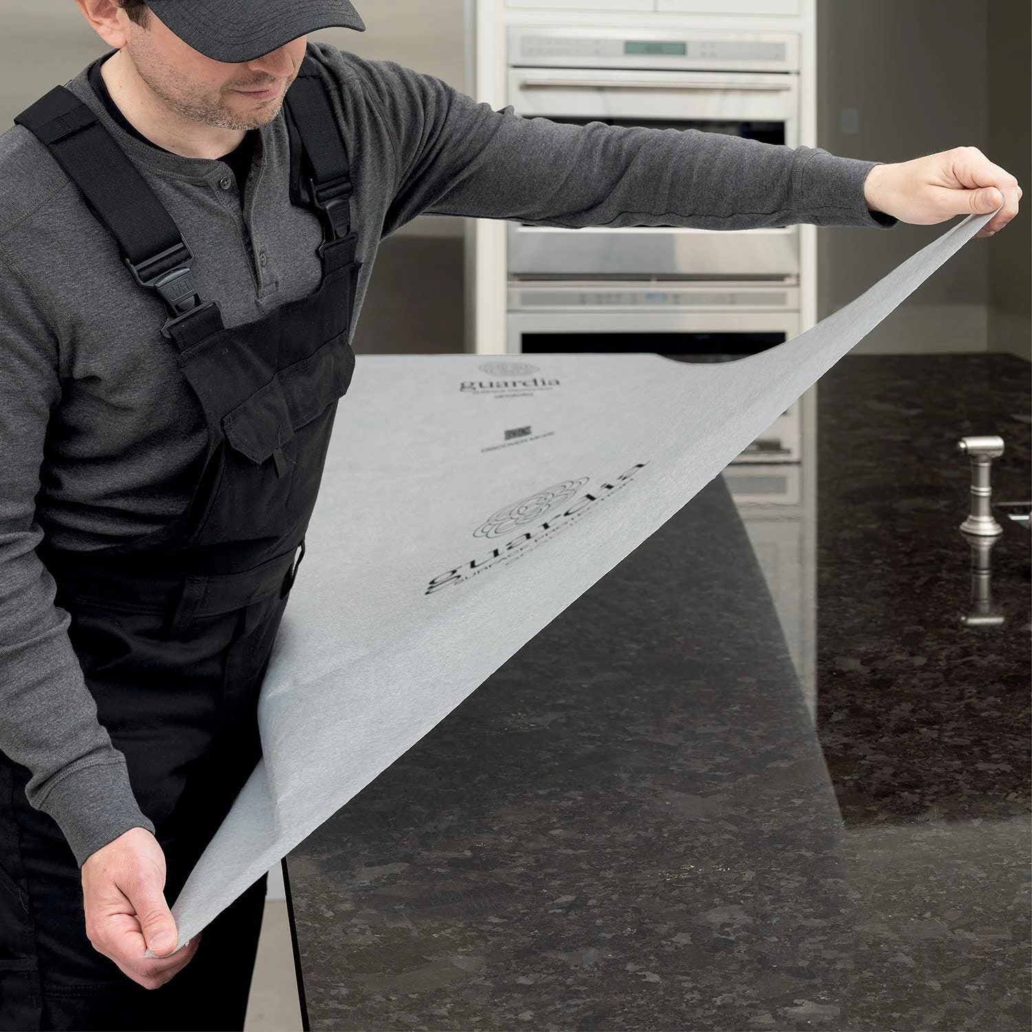 The Guardia surface protection mat is your mate for any renovation project. Guardia is tear-resistant, waterproof, breathable, flexible and has an anti-slip self adhesive coating that keeps it in place. Simply roll it out, overlap and bend it around corners, frames and baseboards. Usable on a variety of surfaces including ceramic, natural stone, hardwood, stairs, counters, tables, furniture and much more.