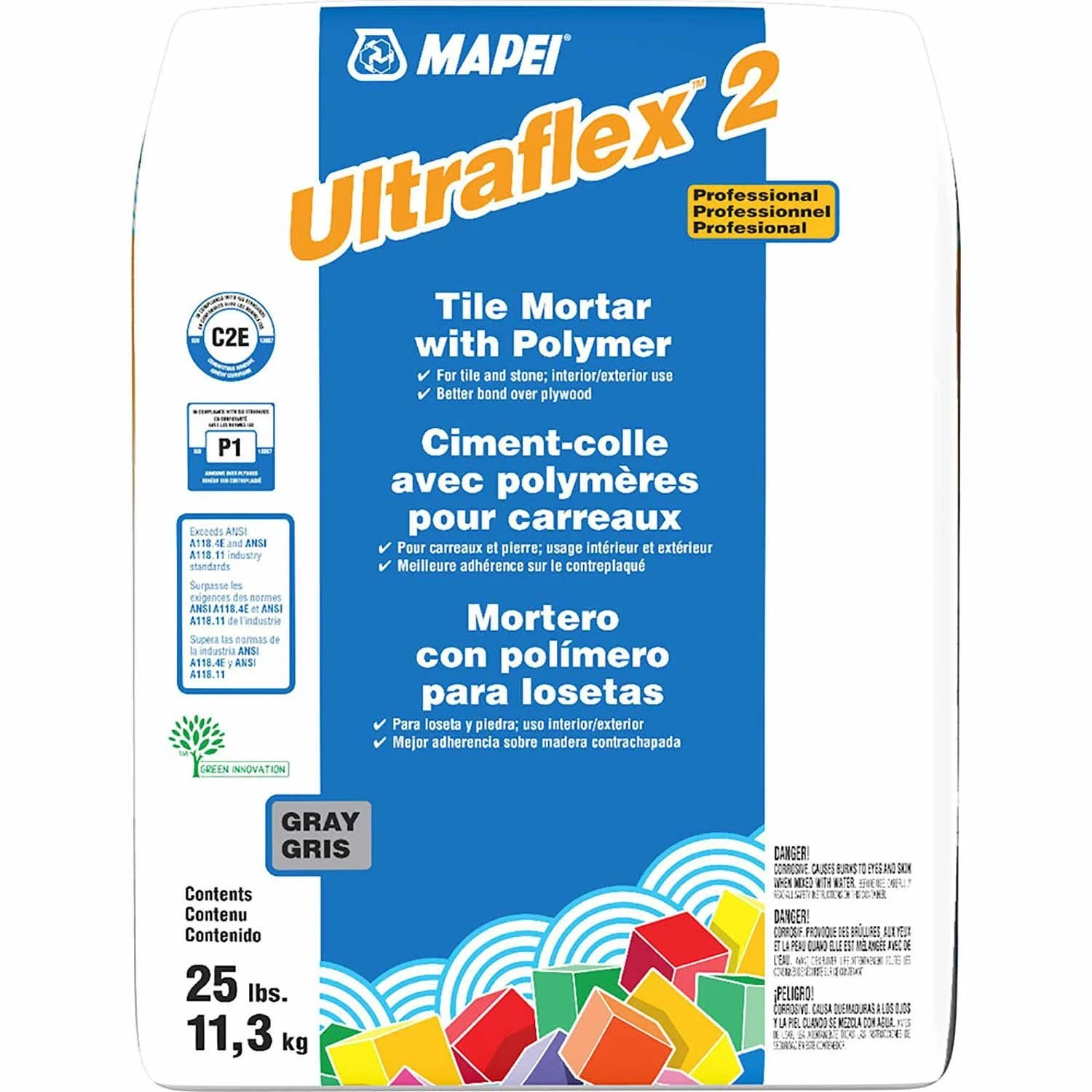 Tile mortar in gray colour, features a high content of unique dry polymer that offers excellent adhesion to the substrate and tile. It provides grouting in 16 – 24 hours. Tile mortar meets ANSI standards.
